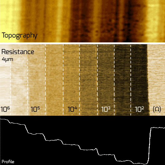 The Galaxy Dual Controller can incorporate ResiScope mode, the unique AFM mode able to measure AFM resistance over 10 decades with a high sensitivity and resolution.