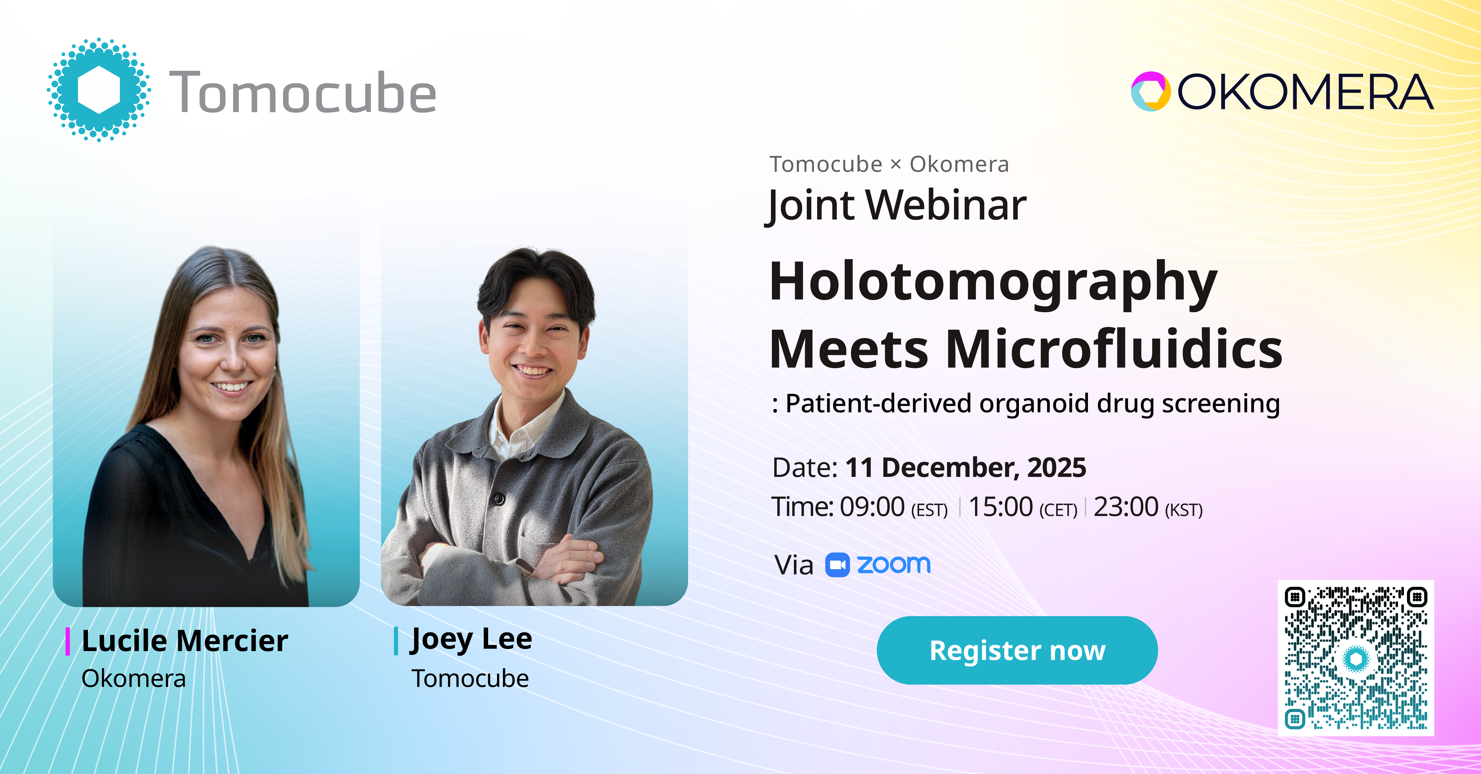 We are excited to announce an upcoming joint webinar with Okomera, a pioneer in droplet-based microfluidic organoid screening, titled “Holotomography Meets Microfluidics: Patient-derived organoid drug screening.” Scheduled for December 11, 2025, this session will showcase how the combination of label-free 3D holotomography and high-throughput microfluidics can transform preclinical drug testing and functional precision oncology.