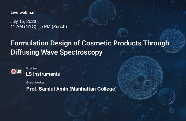 Prof. Samiul Amin (Manhattan College) will be presenting new applications of DWS optical microrheology in cosmetic formulations. The microstructure of surfactant/biosurfactant systems and its characterization through high frequency rheology will be highlighted.