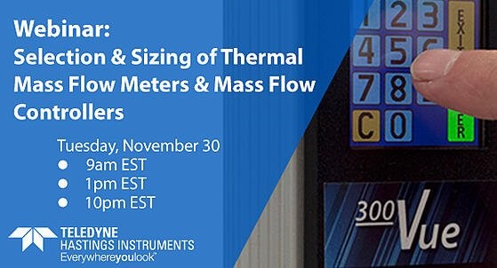 Nov. 30,2021 - Upcoming Webinar - Selection & Sizing of Thermal Mass Flow Meters & Mass Flow Controllers