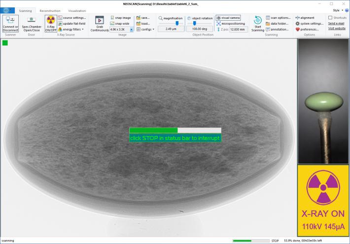 Neoscan microCT systems are supplied with an in-house developed all-in-one software tool for scanner control and processing data. From acquisition of a full series of 2D projection images, reconstruction into a 3D volume, visualization and inspection of this volume in 2D and 3D, to 2D/3D image processing and numerical analysis, the software bundles all complementary steps from sample to result.