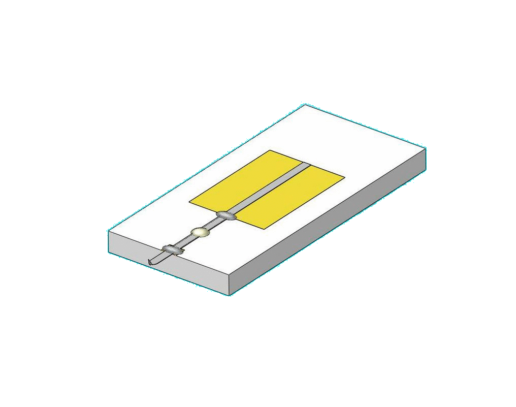 - D - Substrate has a 200um gold transmission line the entire length of the chip and the back is completely covered in gold (standard size chip)