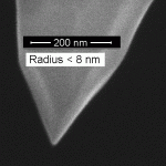 Material: Solid platinum or platinum-iridium probe tip and cantilever supported on standard AFM probe sized ceramic chip, connected to conductive gold bonding pad with conductive epoxy. RMN also has probes available without gold contact pad, to help reduce stray capacitance.