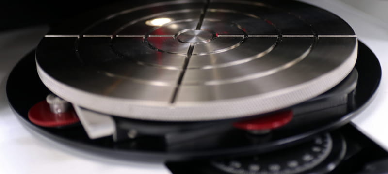 The Alpha-Step D-500 has a range of chucks available to support application requirements. The standard chuck is a nickel-plated aluminum chuck for samples up to 140mm. A flat black chuck is available for transparent samples to minimize reflection from the chuck surface. A universal vacuum chuck is also offered and includes precision locating pins for samples from 50mm to 125mm. Both the standard and universal chucks support stress measurements with 3-point locators to hold the sample in a neutral position for accurate bow measurements.