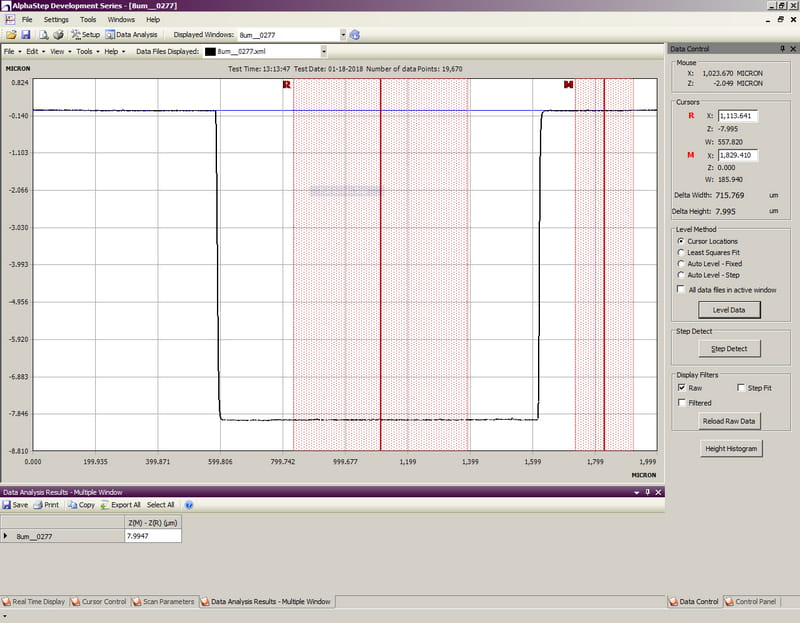The Alpha-Step D-500 offline software has the same data analysis capability that exists on the tool. This enables the user to analyze data without using valuable tool time.