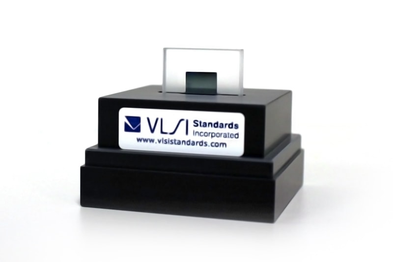 The Alpha-Step D-500 uses thin and thick film NIST traceable step height standards offered by VLSI Standards. The standards feature an oxide step on a silicon die mounted on a quartz block. A step height range of 8nm to 250µm is available.