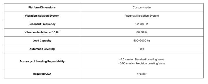 - Superior vibration isolation performance for high-precision applications