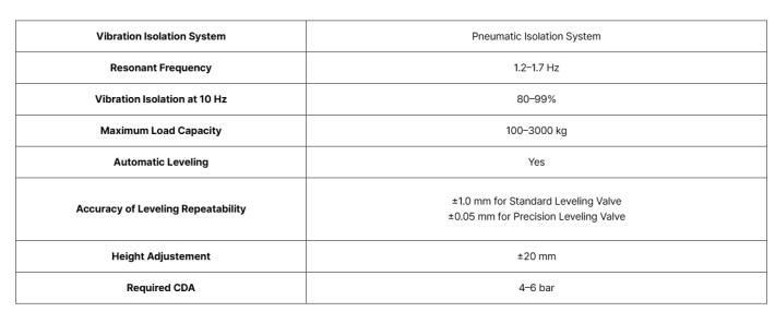 The Pneumatic Support with Tie-Bars and Casters by Daeil System is designed to provide optimal adjustable support, combining the benefits of pneumatic suspension with the mobility of casters and tie-bars. This system is ideal for applications requiring both stability and ease of movement, such as in research laboratories, optical installations, and industrial environments.