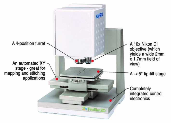 Get an optical profilometer for less than half the price of an AFM or 3D stylus profilometer! The Profilm3D uses state-of-the-art white light interferometry (WLI) to measure surface profiles and roughness down to 0.05 µm; adding the low-cost PSI option takes the minimum vertical feature size down to 0.001 µm.