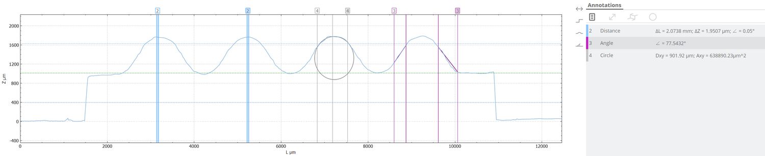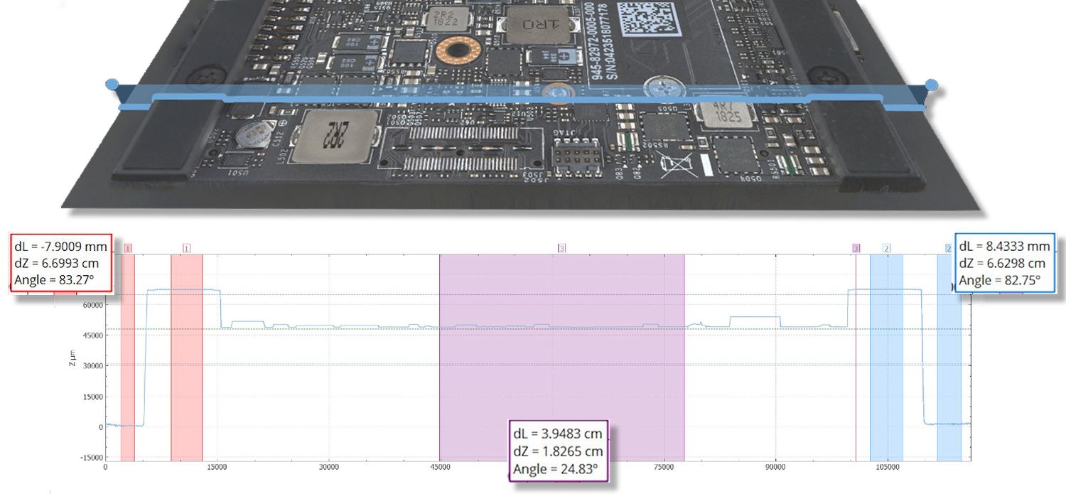 SensoSCAN’s extended measurements module allows the user to easily define the measurement layout. Wide areas of up to 450 million pixels are possible.