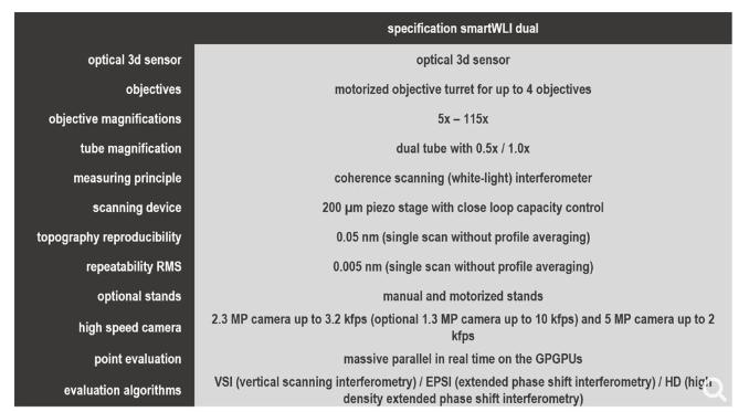 In summary, the smartWLI dual represents an advanced solution for 3D optical profilometry, combining flexibility, speed, and precision to meet the measurement needs in various industrial and research sectors.