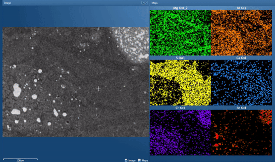 The AZtecLive interface enables real-time chemical investigation of the samples, viewing Live TV rate electron image and X-ray maps until you find a feature of interest.