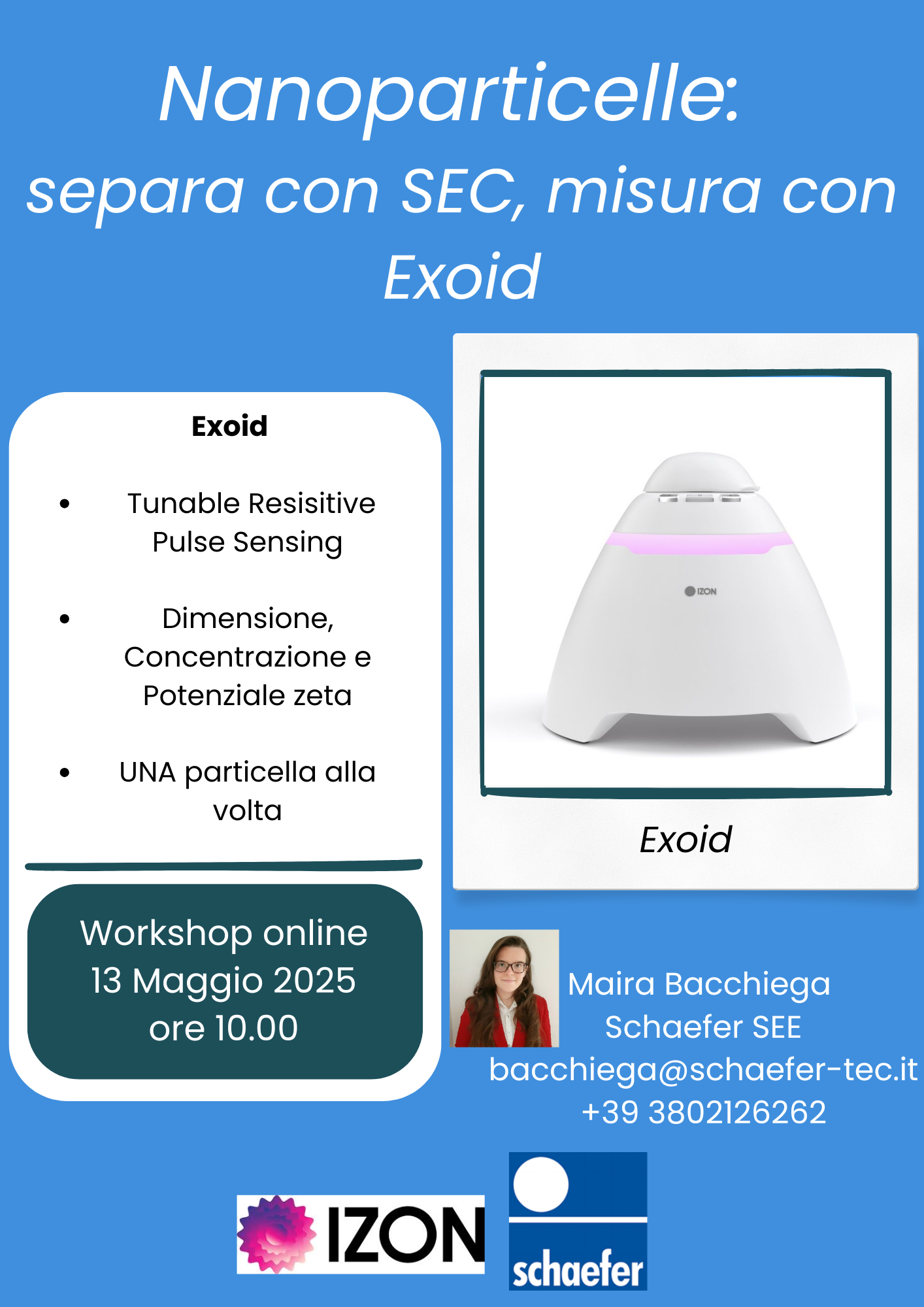 Poi, grazie alla tecnologia TRPS usata dall'Exoid di Izon, il campione viene caratterizzato per dimensione, concentrazione e potenziale zeta.