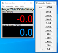 CONTROLLO: in alcuni casi, l'utente potrebbe voler testare i parametri di sistema prima che di interfacciarsi con un PLC. Le routine consentono un facile controllo e l'utente ha la possibilità di aprire una finestra per visualizzare i dati del flusso o del vuoto in tempo reale in funzione del tempo. Può anche visualizzare una finestra grafica che mostri le prestazioni in un determinato arco di tempo. Nel caso di un controller di flusso, l'utente può immettere i comandi del setpoint di flusso utilizzando un input numerico oppure servendosi di una barra di scorrimento.