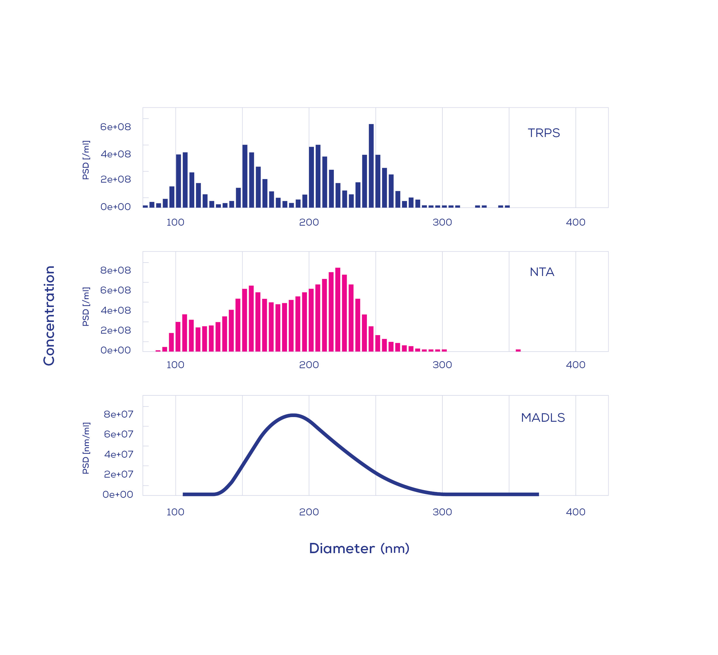 Delle sei tecniche, TRPS ha ottenuto risultati eccellenti, consentendo di ottenere misurazioni riproducibili di dimensioni e concentrazione per miscele di polistirene, liposomi e campioni purificati di EV. La TRPS ha fornito un alto livello di risoluzione per i campioni polidispersi e ha prodotto misurazioni di dimensioni e concentrazione allineate con i diametri nominali dei vari standard tracciabili dal NIST. Le miscele sperimentali di polistirene sono state accuratamente riflesse nell'analisi della distribuzione dimensionale TRPS, anche per le miscele contenenti le particelle più piccole (60 nm). Nel complesso, Vogel et al. (2021) hanno mostrato i limiti di una serie di tecniche e, come molte altre, raccomandano l'uso di più approcci ortogonali, idealmente utilizzando almeno una tecnica non ottica o hyphenated. In virtù dei risultati di questo studio, TRPS può continuare a essere considerato un forte concorrente nel panorama della caratterizzazione di nanoparticelle ed EV.