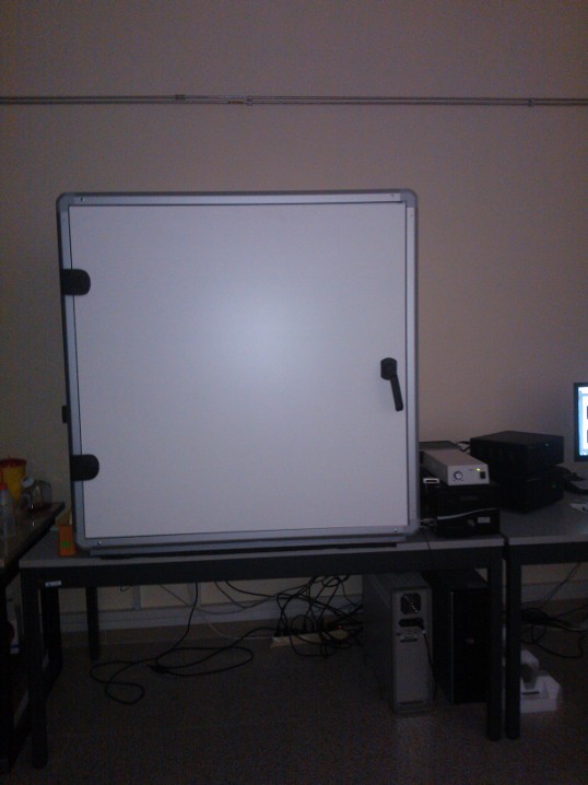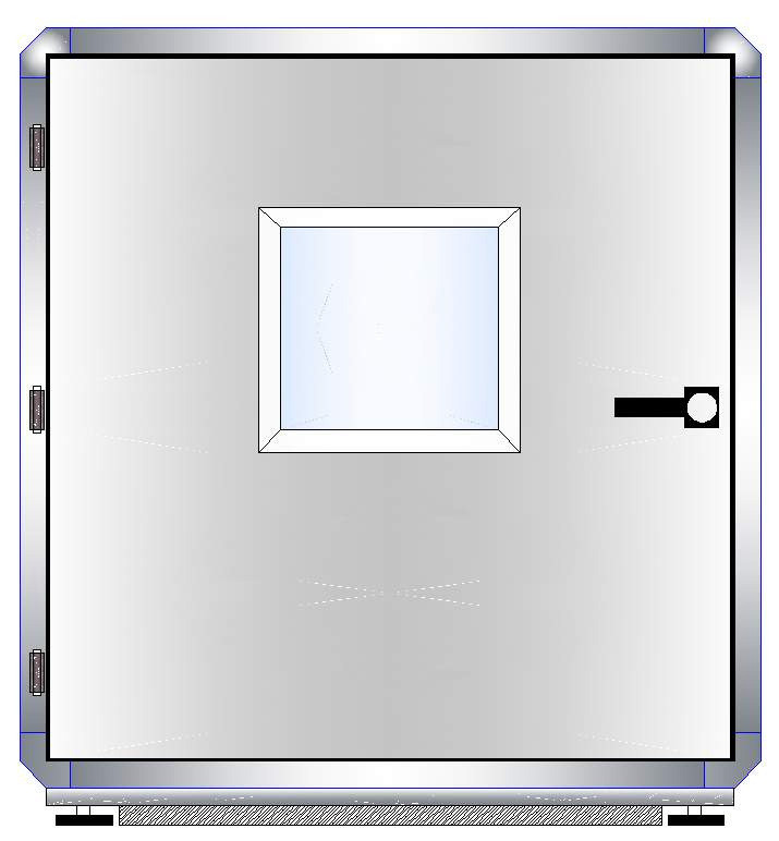 La finitura interna è realizzata con poliuretano fonoassorbente di forma piramidale, di colore grigio antracite. Le due porte della Pro 32 possono essere aperte in entrambi i versi, semplicemente agendo sulle cerniere, che rivestono anche la funzione di maniglie.