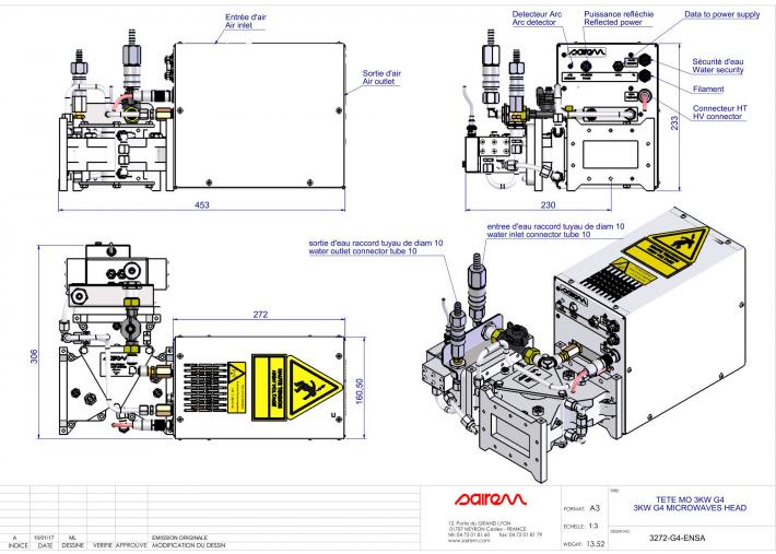 - Rilevamento dell'arco incluso di serie, nella testa del microonde. È inoltre disponibile un ingresso arco per l'applicatore/processo del cliente. Può prevenire danni al processo, spegnendo il microonde in caso di arco voltaico.