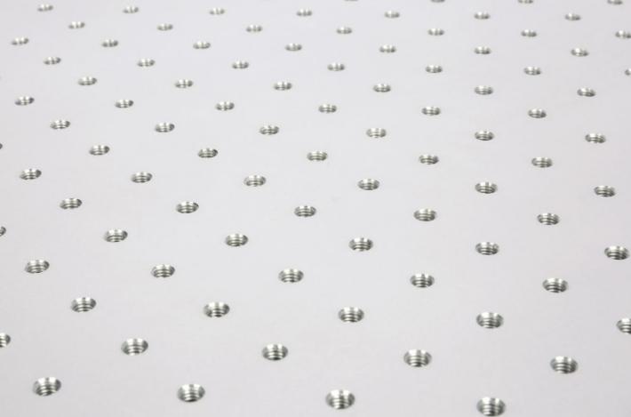 - Superficie in acciaio inossidabile con griglia di fori filettati (M6 o 1/4-20) per un montaggio preciso
