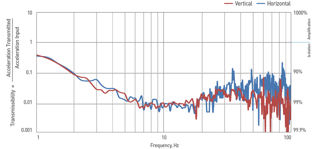 Performance di isolamento dalle vibrazioni inferiori allo Hertz